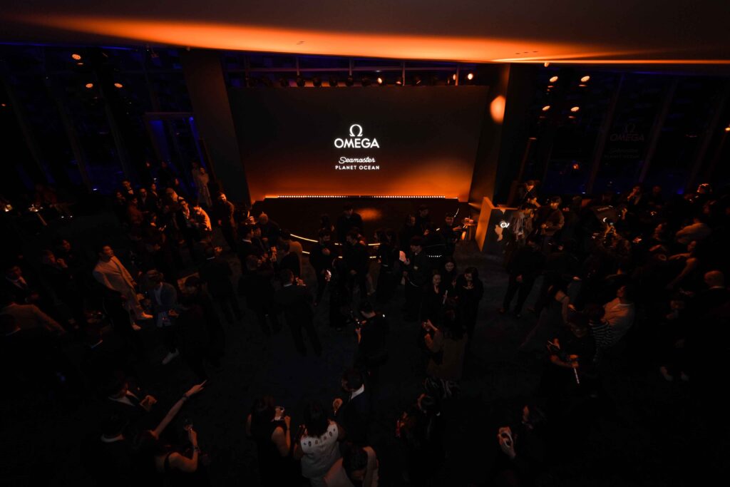As the golden sun set, light danced across pools and fountains, washing the museum in Omega’s signature orange hue. Throughout the night, artistic lighting reinforced the collection’s oceanic narrative, paying tribute to Omega’s decades-long dedication to innovation in diving watches. At the heart of it all, a full showcase of the redesigned Planet Ocean models invited guests to admire each watch’s technical mastery and refined aesthetics.