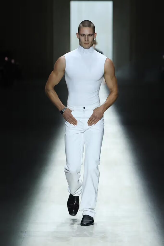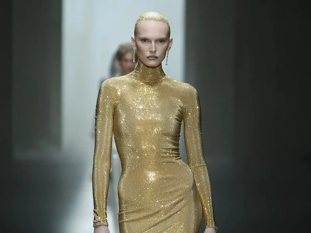 Speaking of the collection itself, FW26 showcased everything Demna excels at. Slinky silhouettes, leggings, and sequined dresses—which some felt were more Demna than Gucci, were the main characters of the collection, enhanced by subtle GG monograms and logo details. Leveraging the designer’s penchant for streetwear and quirky silhouettes, the glitzy Gucci pieces were paired with white tank tops, half-worn T-shirts, and track pants, blending streetwear with high fashion.